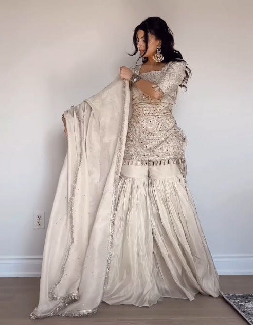 Work : thread embroidery, sequins, and cutdana (bead) work