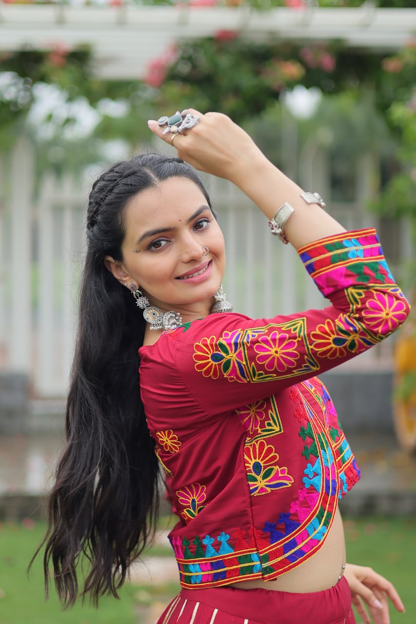 Fabric & Work :- Roman Fabric With Kutchi Gamthi Embroidered Work