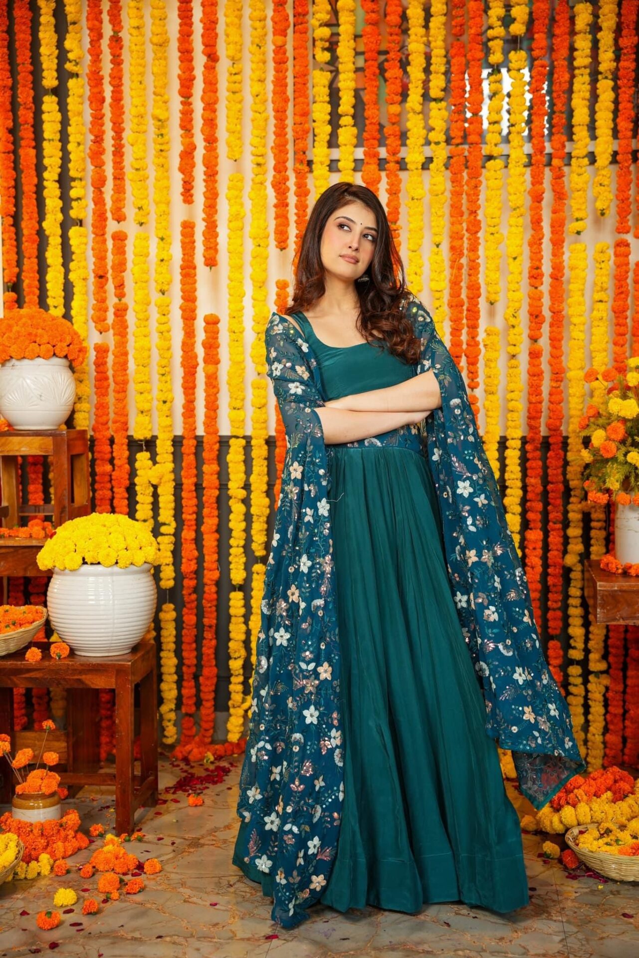 Melody green croptop-shrug set