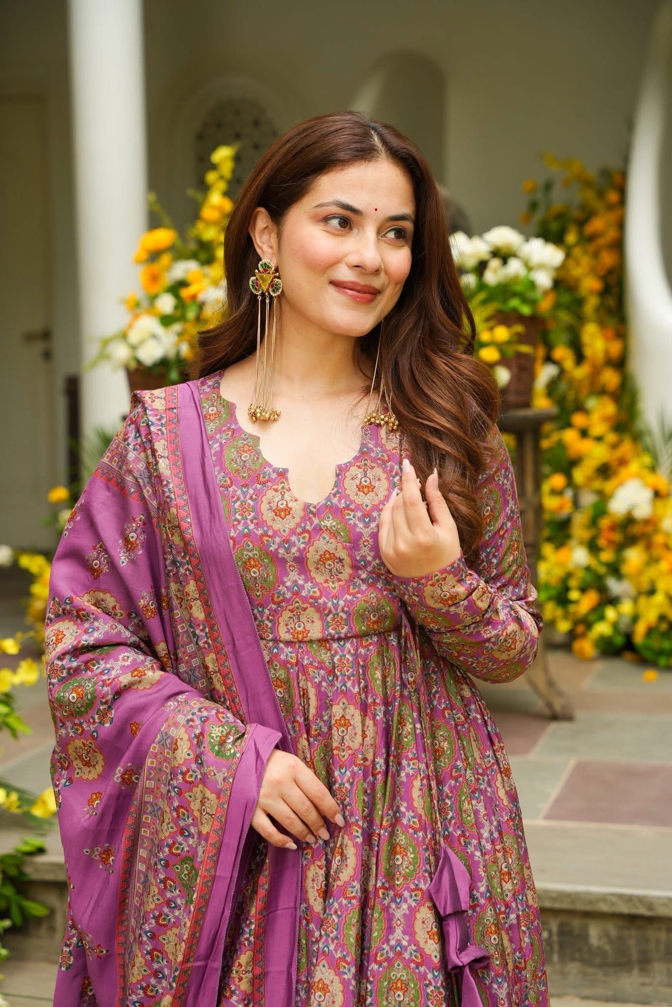 Nashita Purple Muslin Anarkali Suit Set