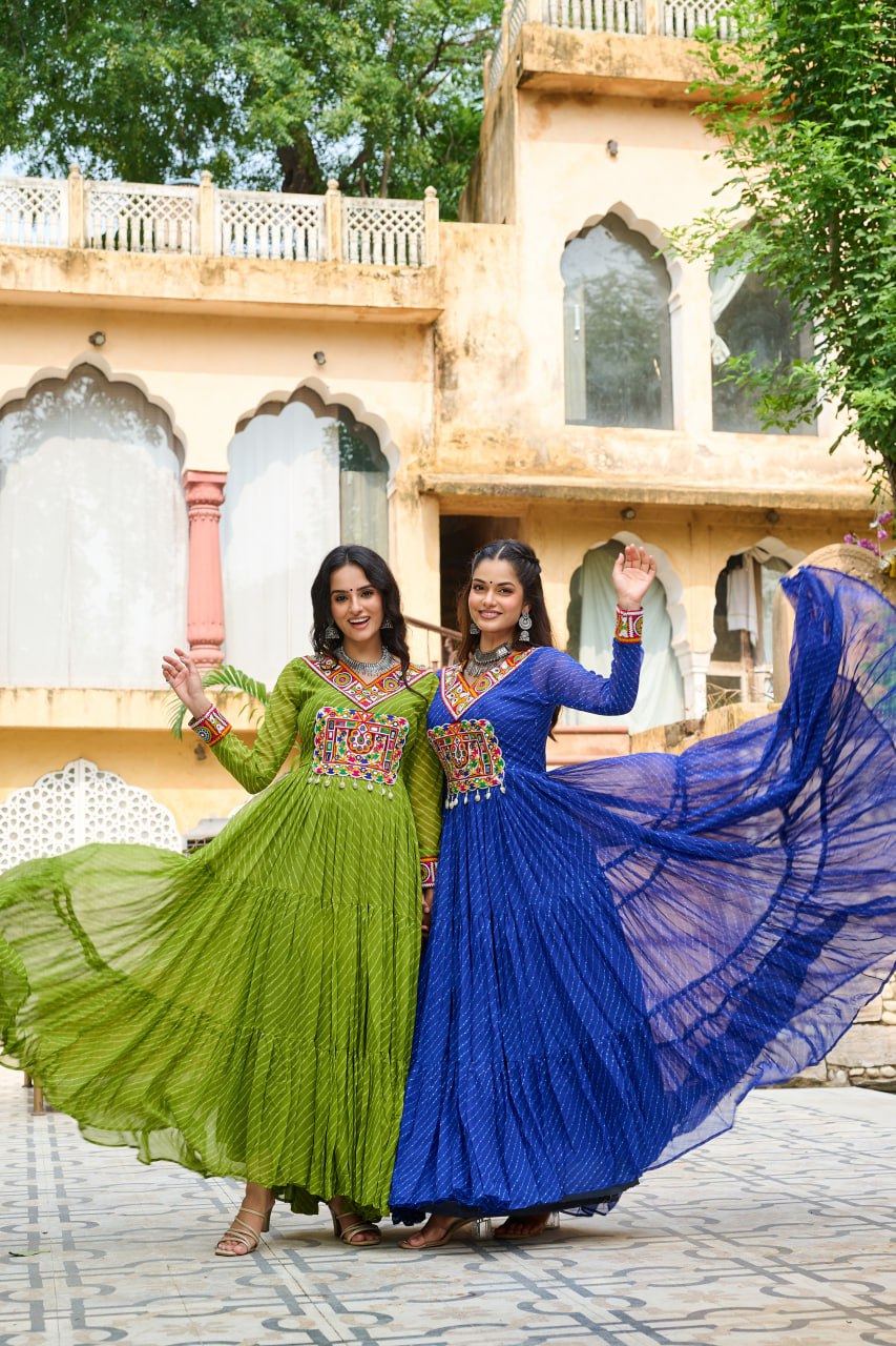 Navrang Twirl Magic Mirror Embroidered Tiered Flare Gown
