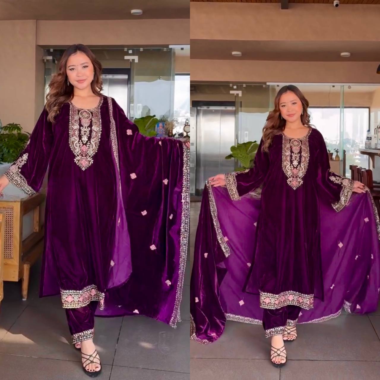 Pant fabric* :Pure Heavy Viscous Velvet With Heavy Embroidery Multi Needle Sequence Work. *(FullyStitched)*